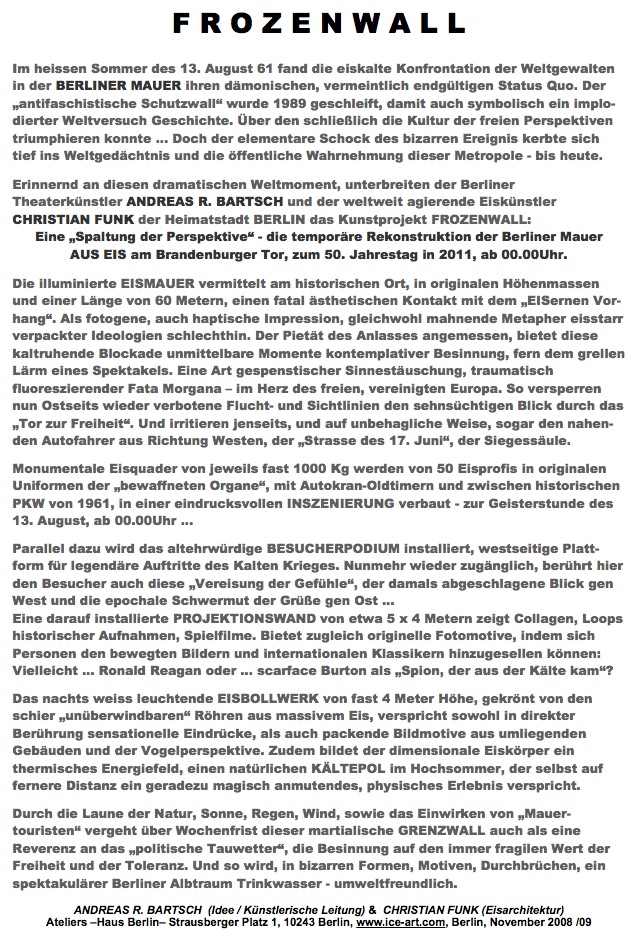 & FROZENWALL © (Die Berliner Mauer aus Eis, 50 Jahre Mauerbau 2011) Foto